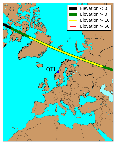 We can also predict the next time the satellite will pass over our horizon (the so-called AOS, arrival of satellite or arrival of signal):