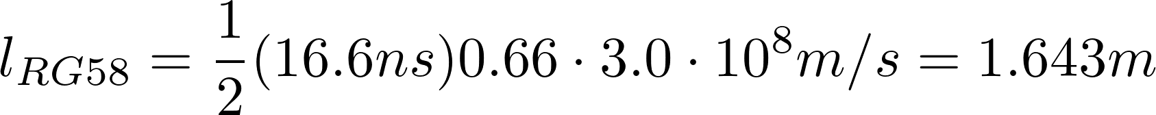 I also measured the RG58 coax with a measuring tape, and found the physical length to be 1.55 m.