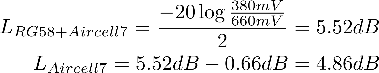 Finally using the results from figures 5 and 6 we find the length and attenuation of the Aircell 7 cable