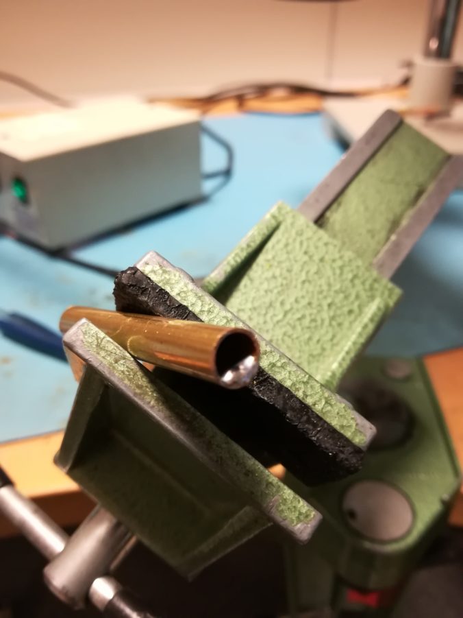 Add a reasonable amount of solder inside one end of the copper tubing. Do this on both tubes that make up the dipole legs.