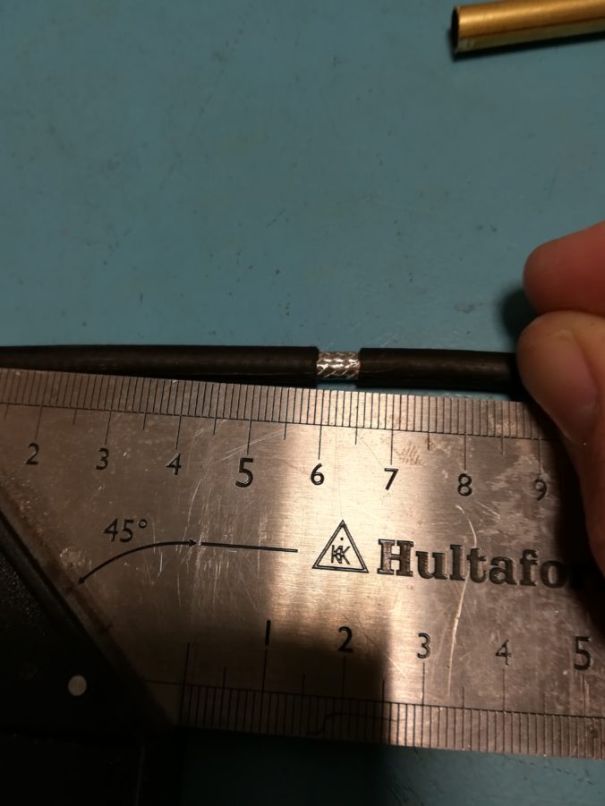 Make another cut at 60 mm and remove the jacket between the 55 mm cut and the 60 mm cut.