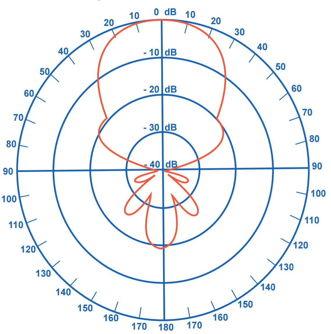 Datasheet antenna pattern for 2×9 144 MHz Tonna yagi.