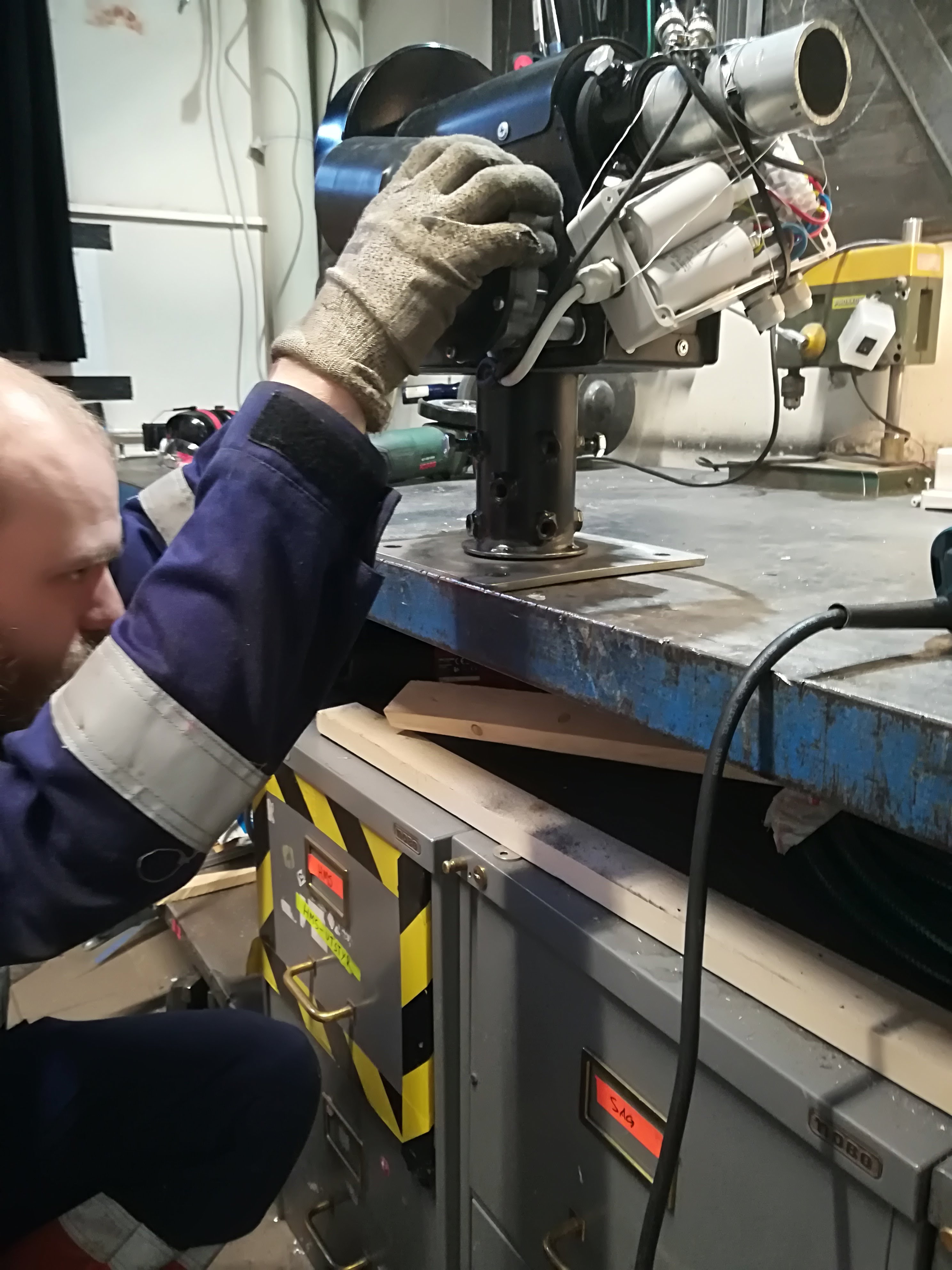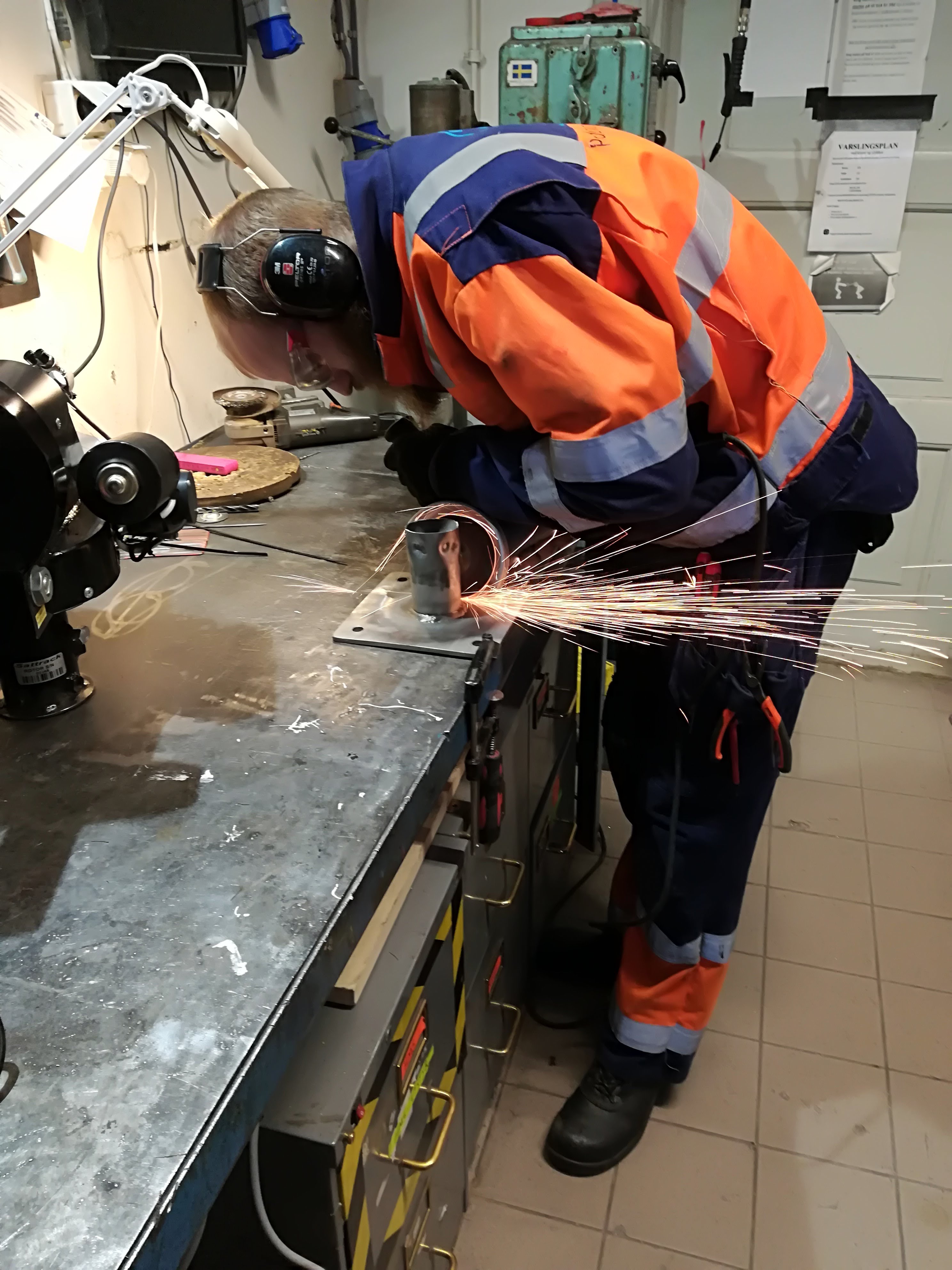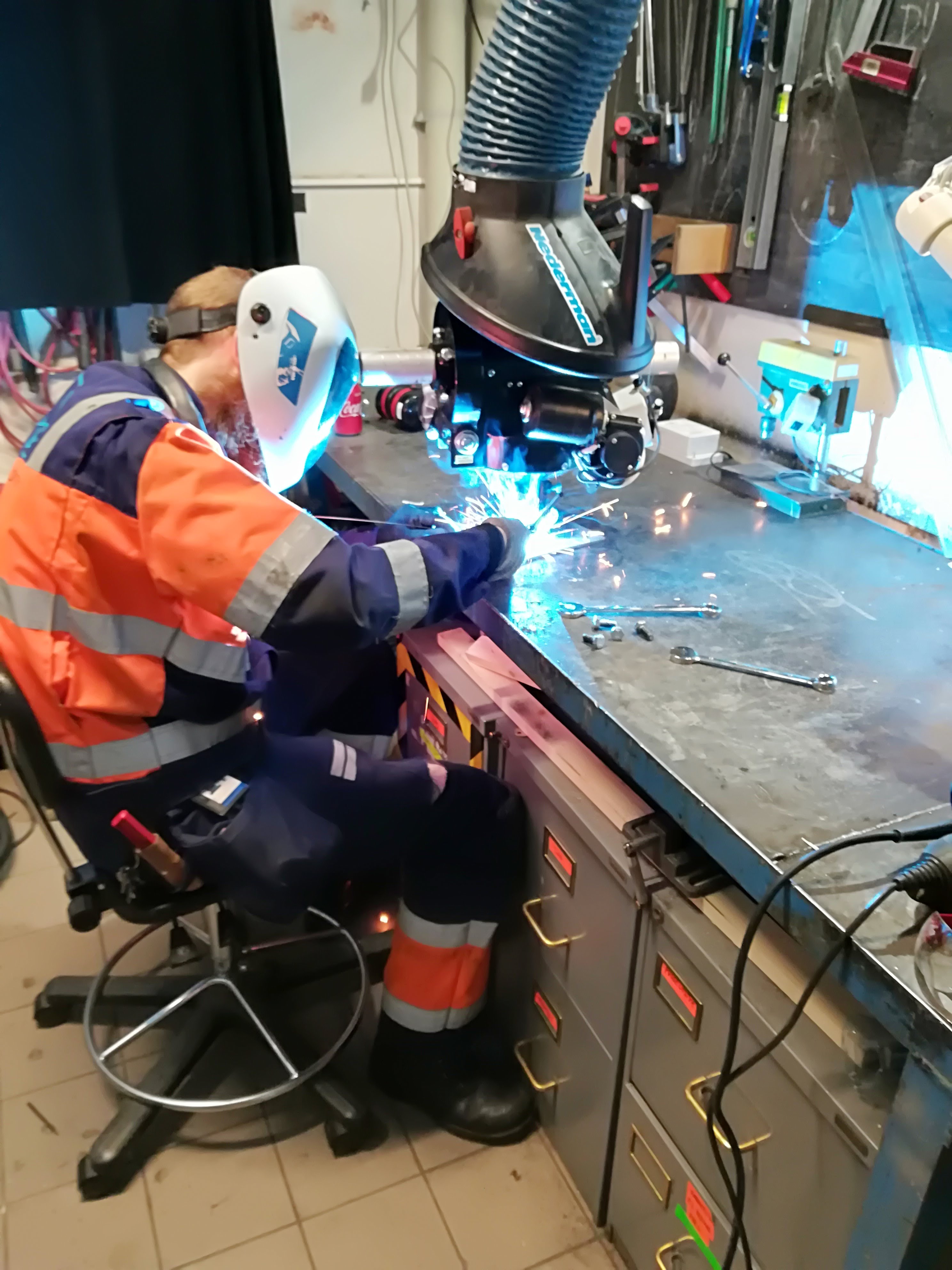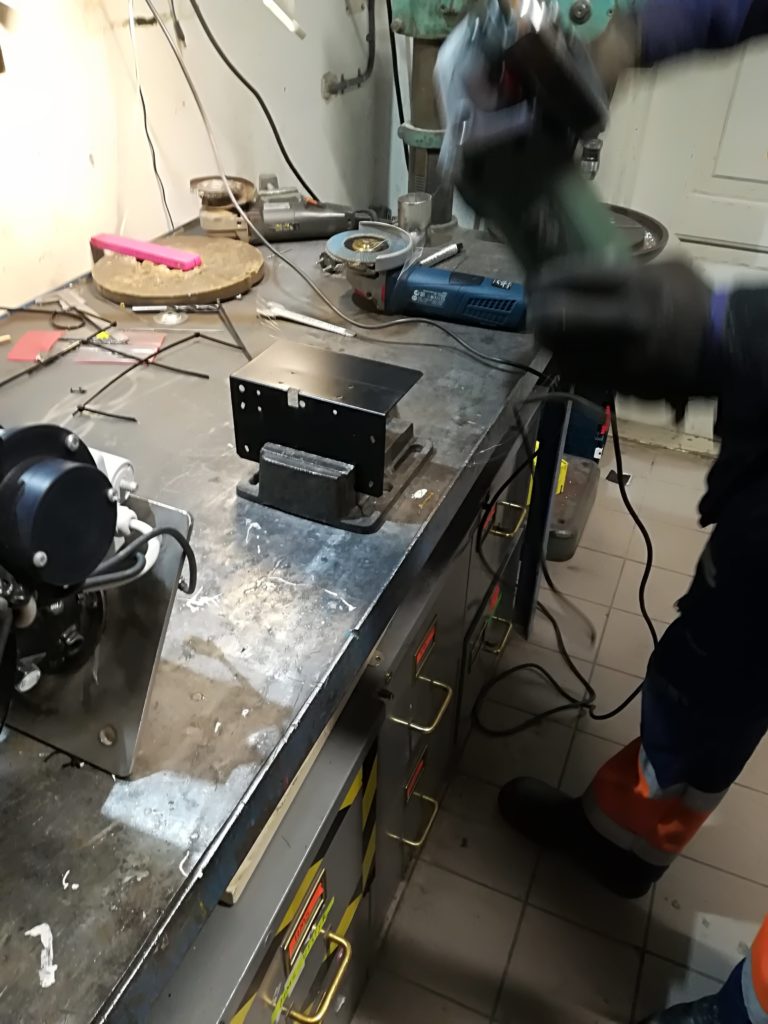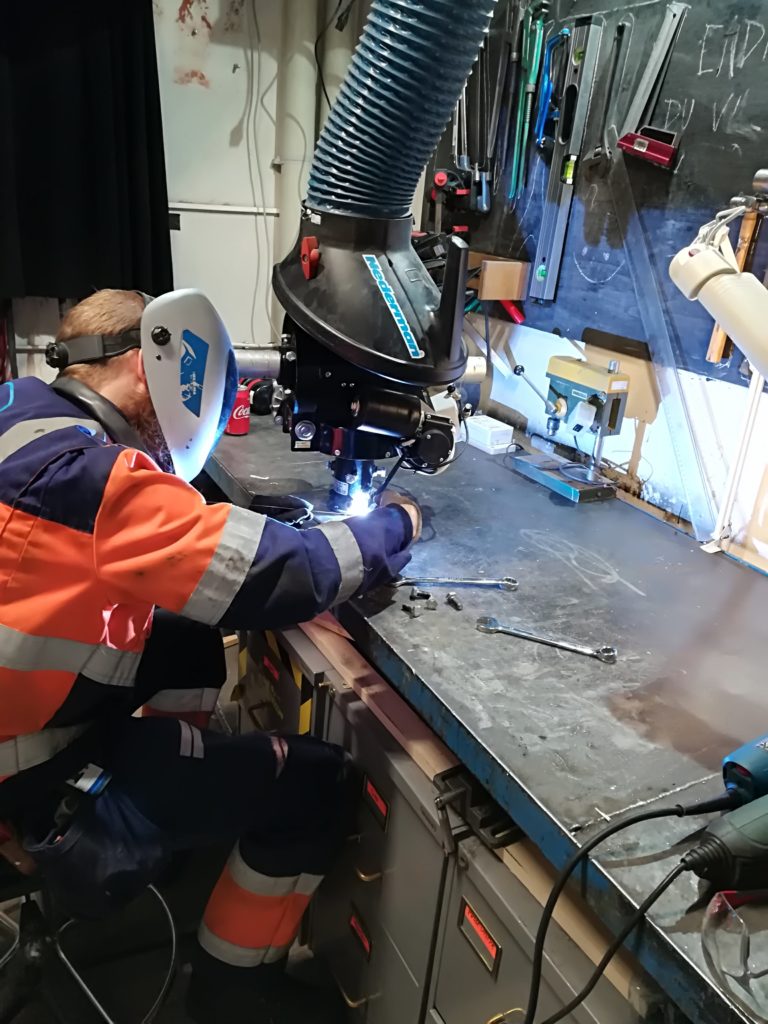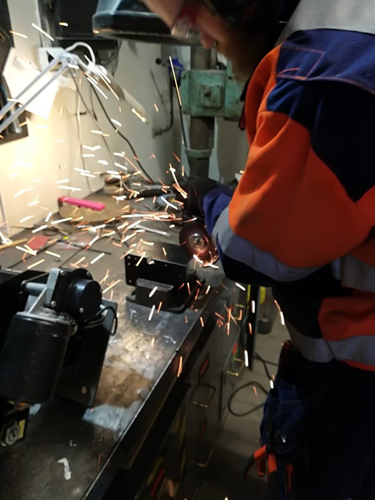 - The welding and angle grinding is performed at Omega Verksteds mechanical workshop.