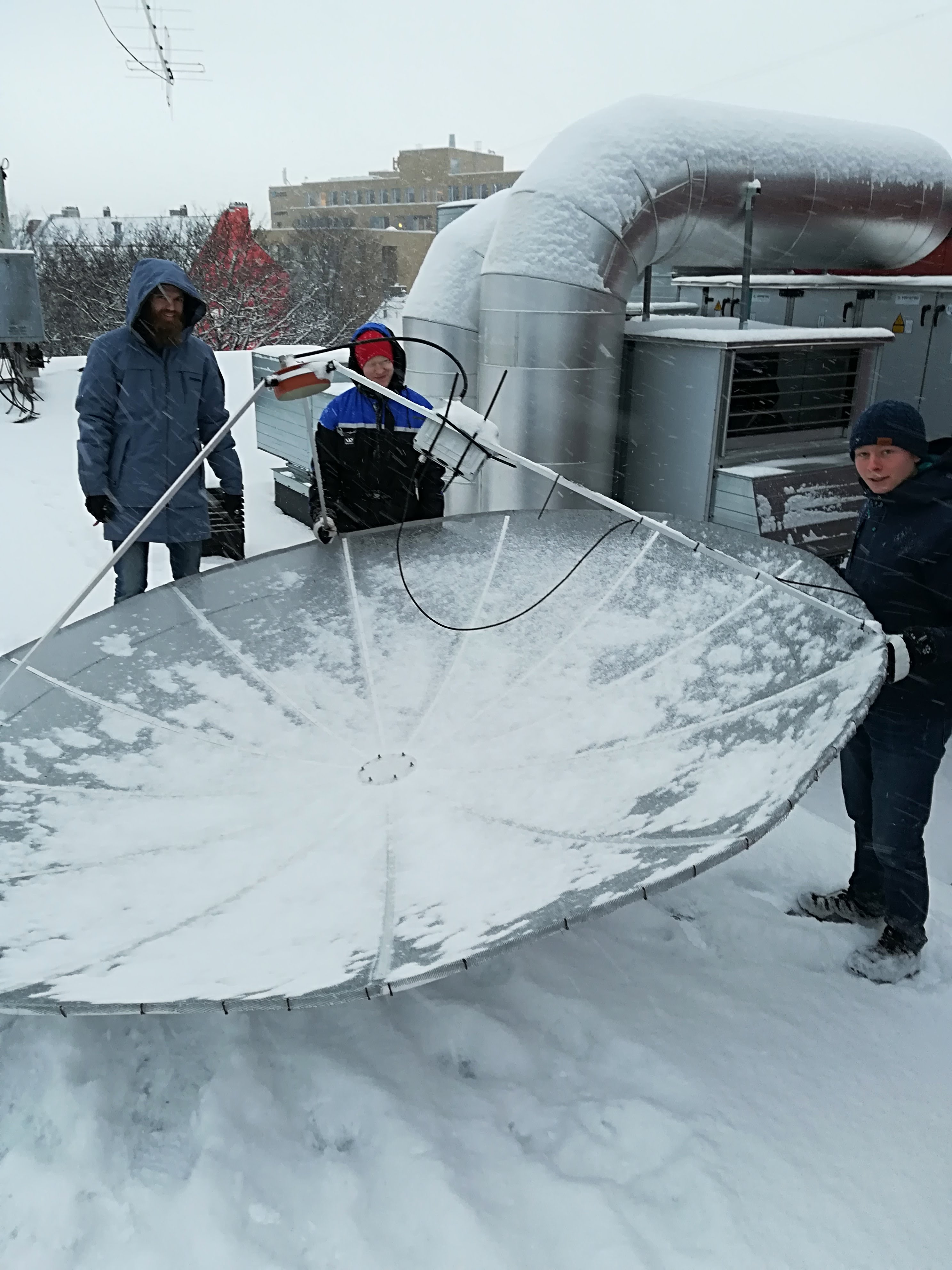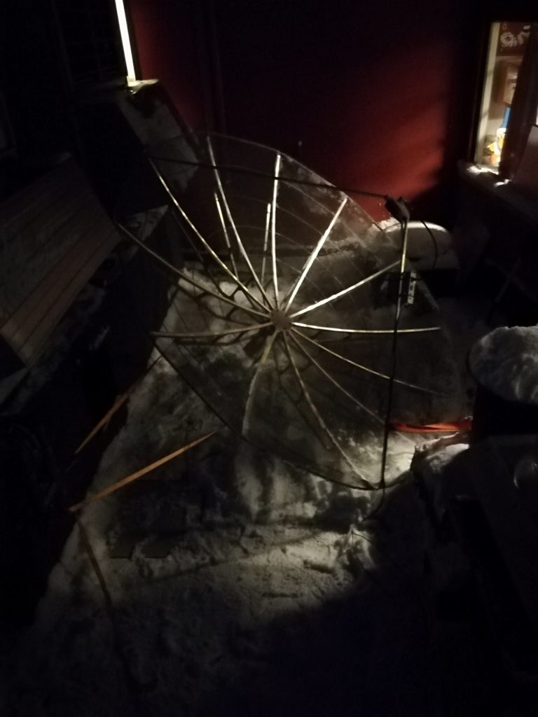 - While we worked on the welding, the parabole managed to gather quite a lot of snow.