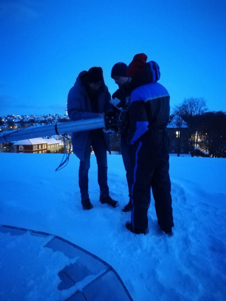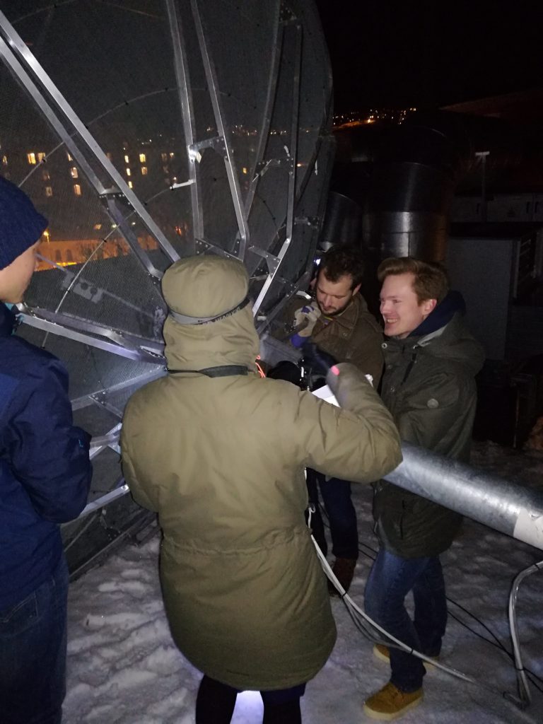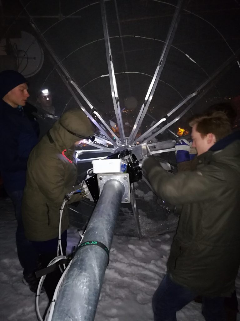 - LA2QUA (left) and LB7IG (right) preparing the parabole for deattachment.