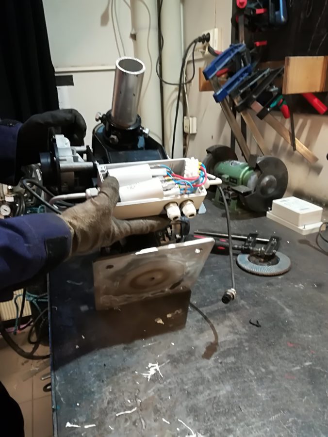 Since the square flange is a lot wider than the circular flange, the position of the electronics box must be changed.