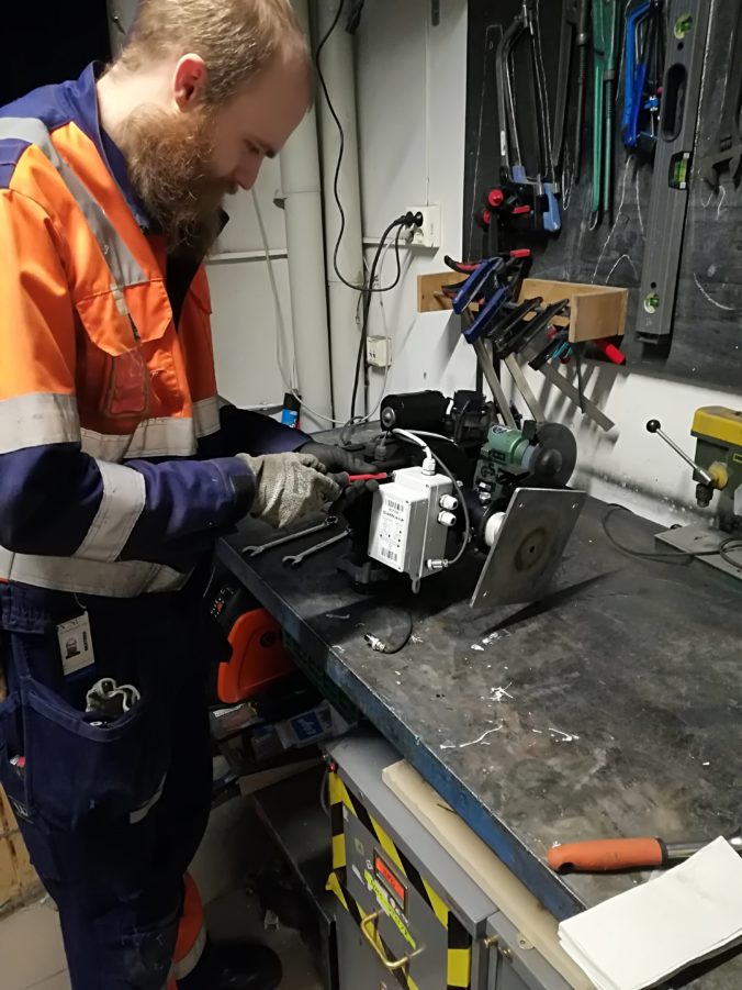 Removing the electronics box from the rotor.