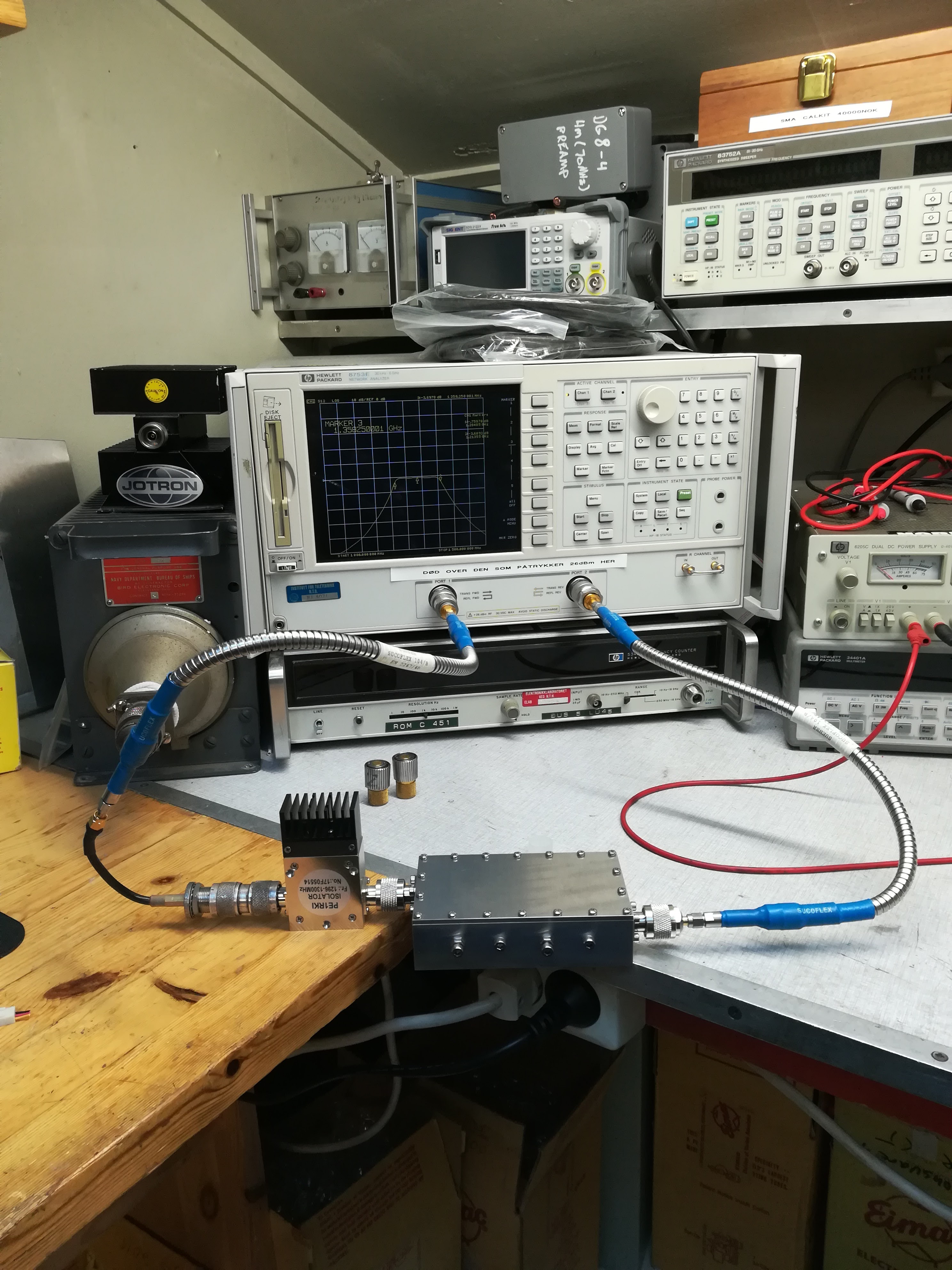 Once the parts from PE1RKI arrived, we were ready to start the build. After unboxing we eagerly connected the filter and circulator to our network analyzer to check that everything was in order.