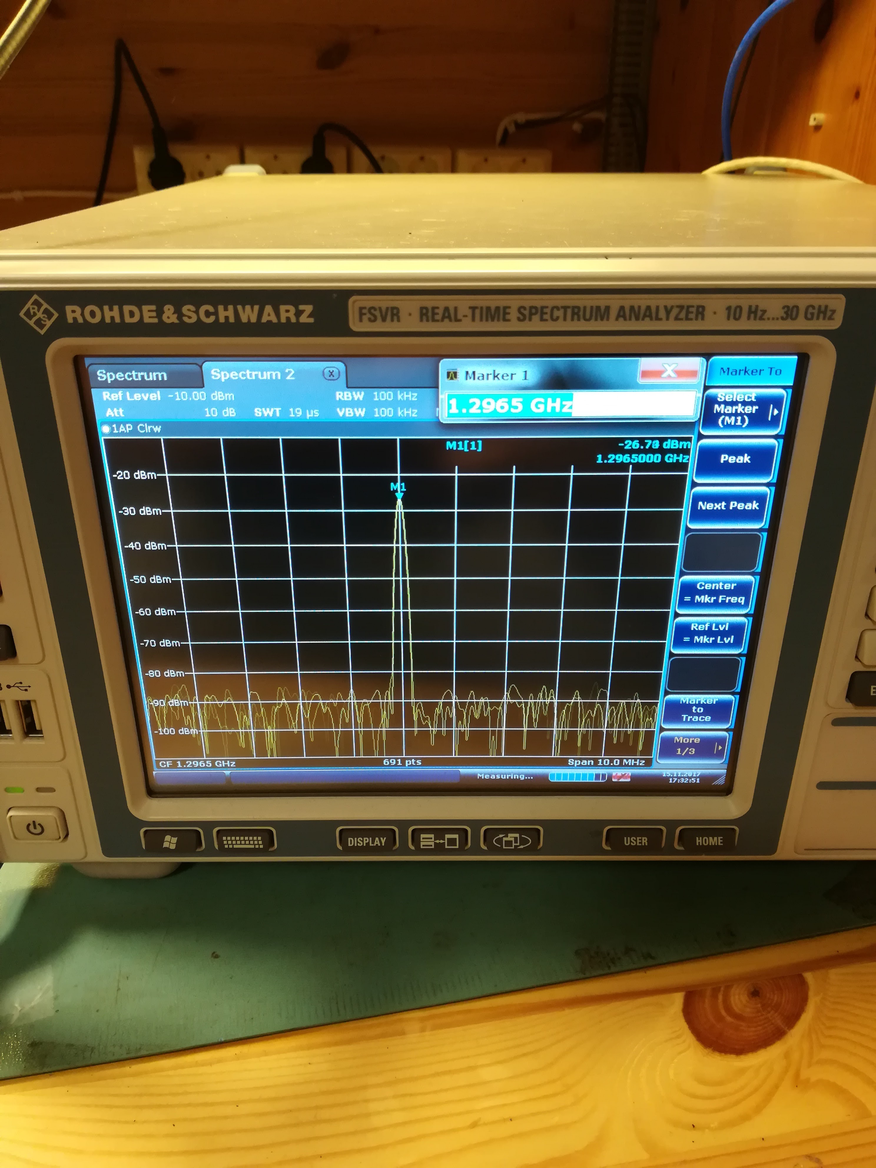 - First output test. The beacon was programmed to transmit on 1296.5 MHz for this test.