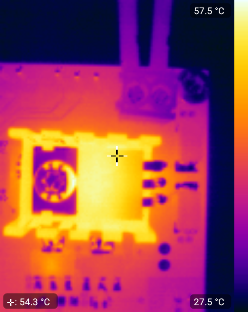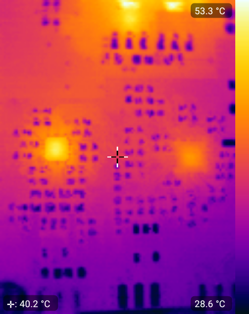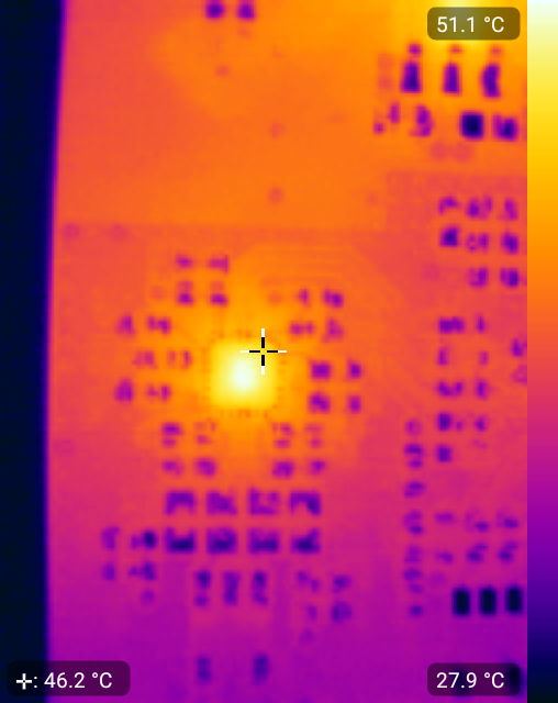A thermal imaging camera allowed us to check the thermals of the CW beacon PCB. As expected the voltage regulators and RF ICs are the parts that get hot. All seems to be in order, but the temperature got all the way to 59 degrees after a couple of minutes. As a security measure, a fan is placed next to the PCB inside the final chassis.