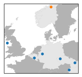 We also wanted to highlight the countries. The country names can be reverse-looked up from the coordinates using geopy: