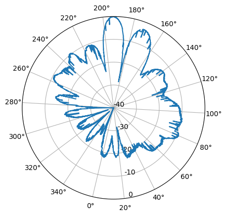 Here is the signal level from LA2SHF, our 23cm beacon, as a function of time as we sweep the rotor over all azimuth angles:
