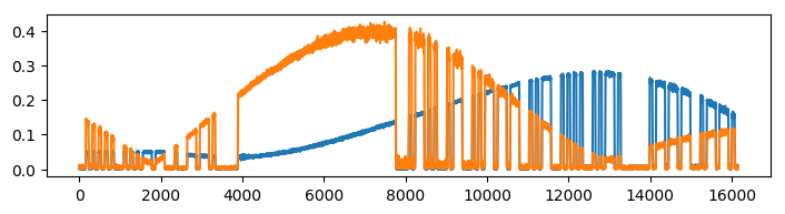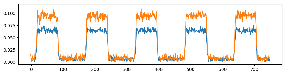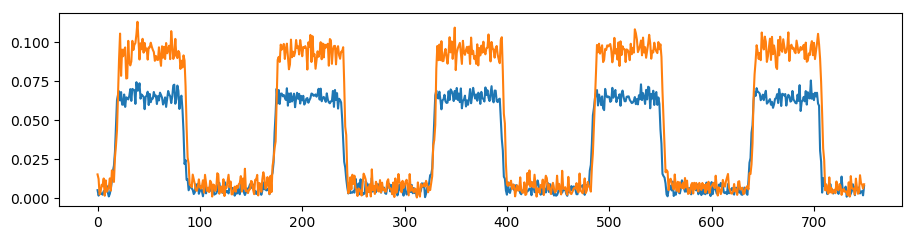 The first part of two sequences that are offset approximately 2 samples with respect to each other is shown below: