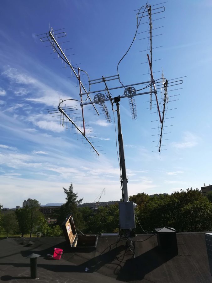 We found that it is common to work EME with some assisting tools. Firstly a software for generating and decoding JT65 (and its subtypes) is needed. WSJT-X, which we are familiar with from working JT65 on 6 m, and some FT8 on the HF bands, is one such software. To coordinate which stations is on the air, it is common to use loggers – which are chat websites where operators announce that they are working the band. For JT65 on 2 m, we found N0UK’s WSJT EME-1 site to be very useful. Finally we were also pointed towards the livecq.eu site, which is a site where active signals are spotted. This makes it a lot easier to know where to listen. Unfortunately we were not able to decode any of these stations, but…