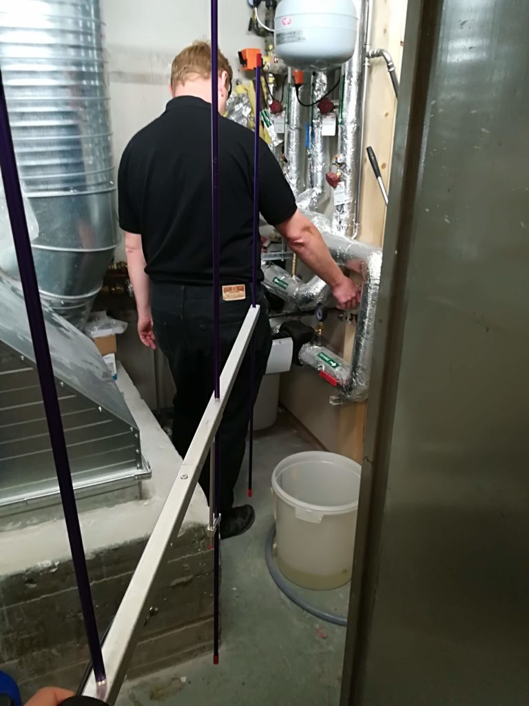 The next noise source was located inside Samfundet. First we thought that it was the newly installed ventilation aggregates that made the noise, but with a little help from Tormod (Samfundet’s “fix-it guy”), we were able to trace the noise down to where it was coming from. This noise turned out to be a bit of a headache to fix, since it comes from a power supply which powers parts of Samfundets door access and fire systems.