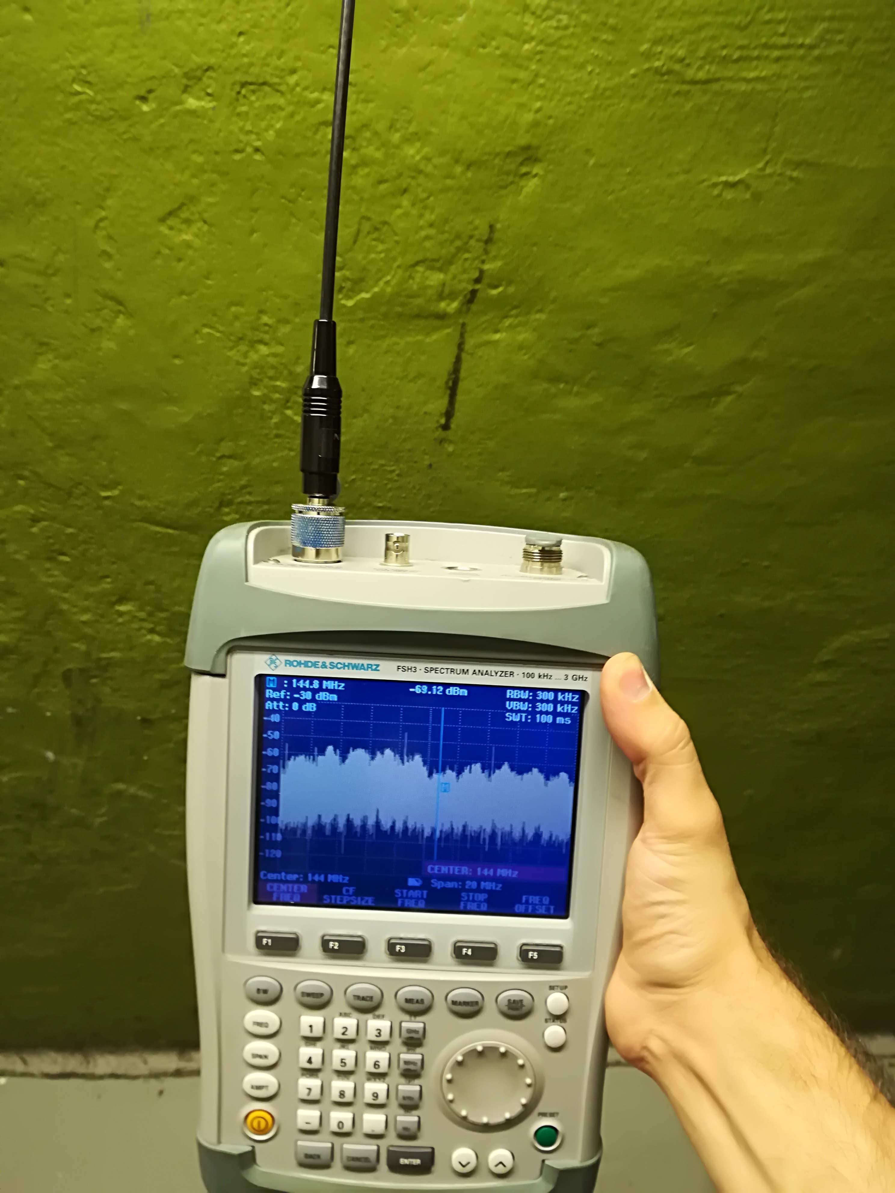 Luckily, we had received a very generous donation from Bjørn at Rohde & Schwarz Norway last year. The portable FSH3 spectrum analyzer, which was about to be put to good use!