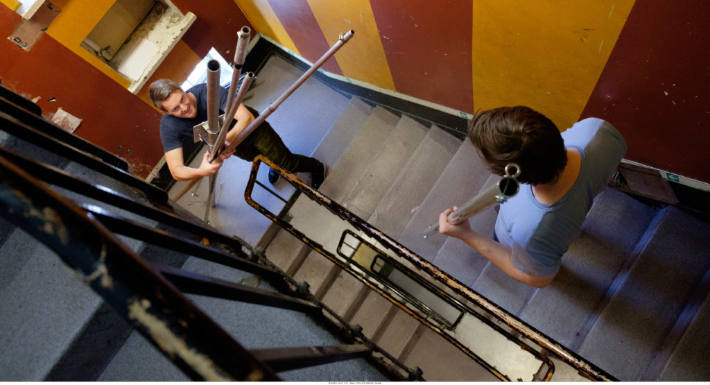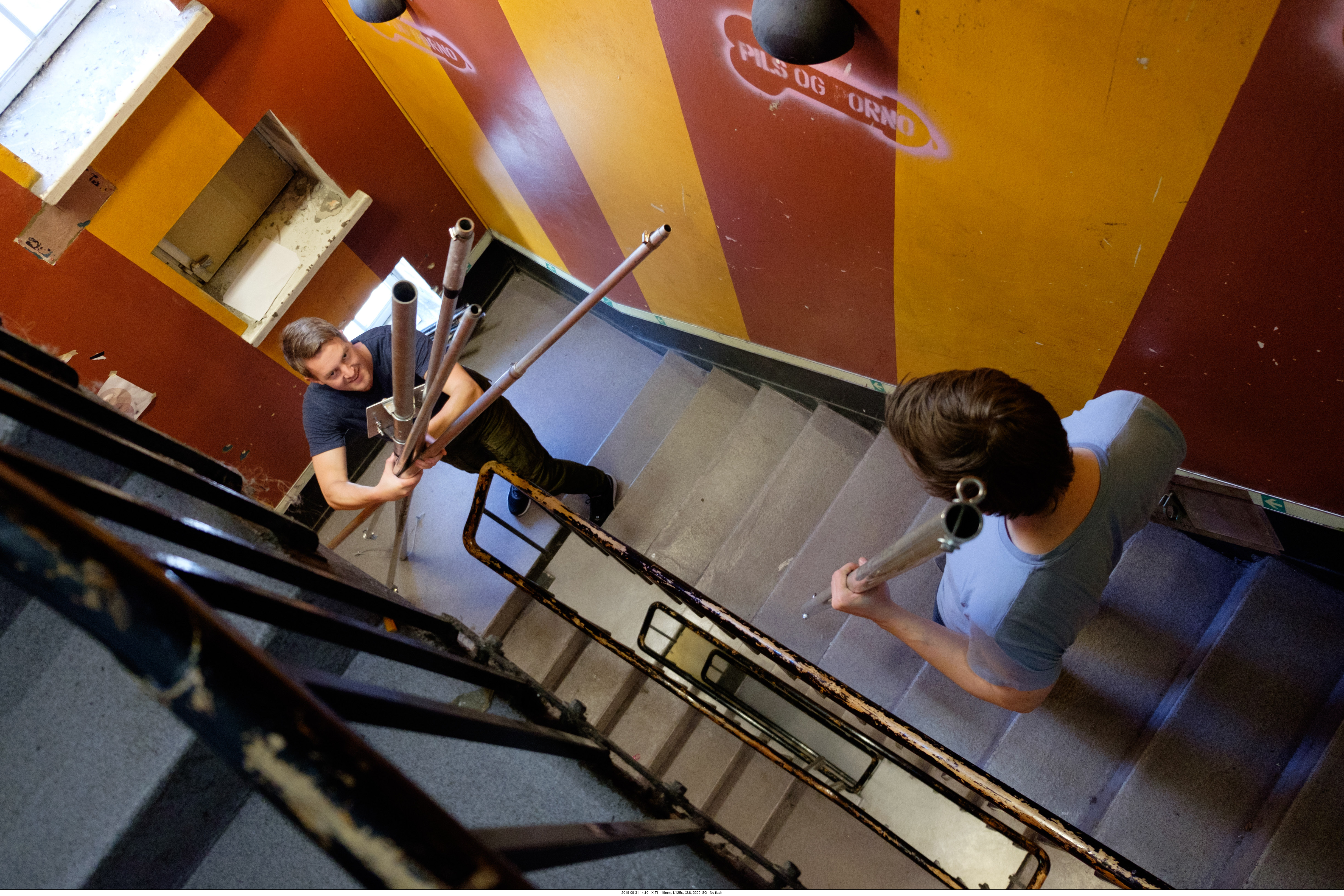 After assembly, the bananphone is mounted on the Røde Kors-mast, which is then hoisted up. We didn’t have any photos this year of the mast at the full height, but the final installation can also be seen in the photos from last year.