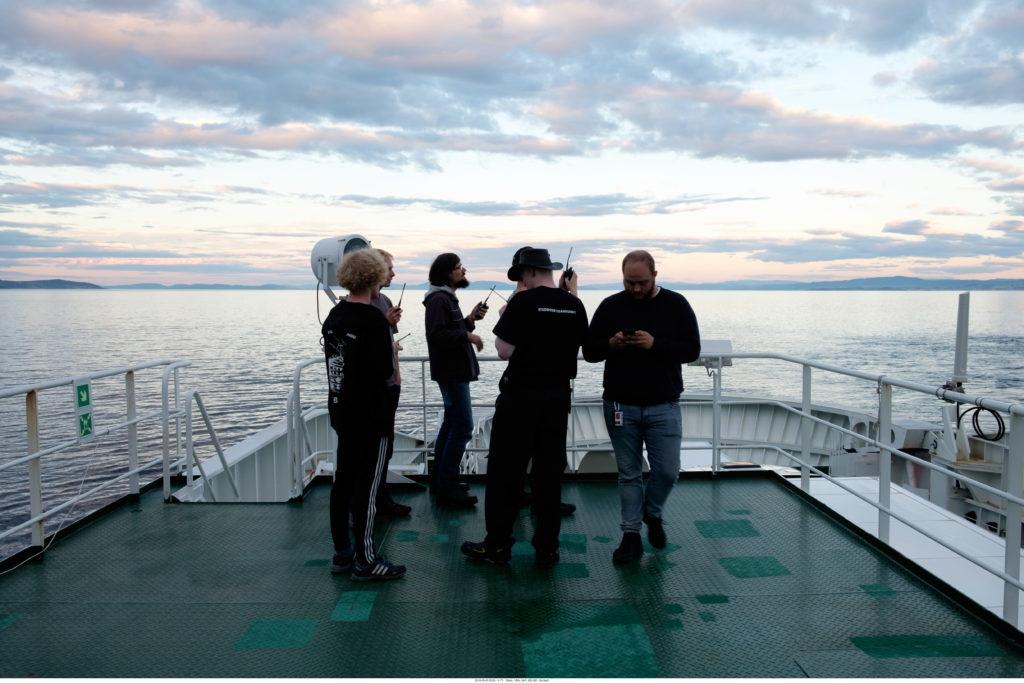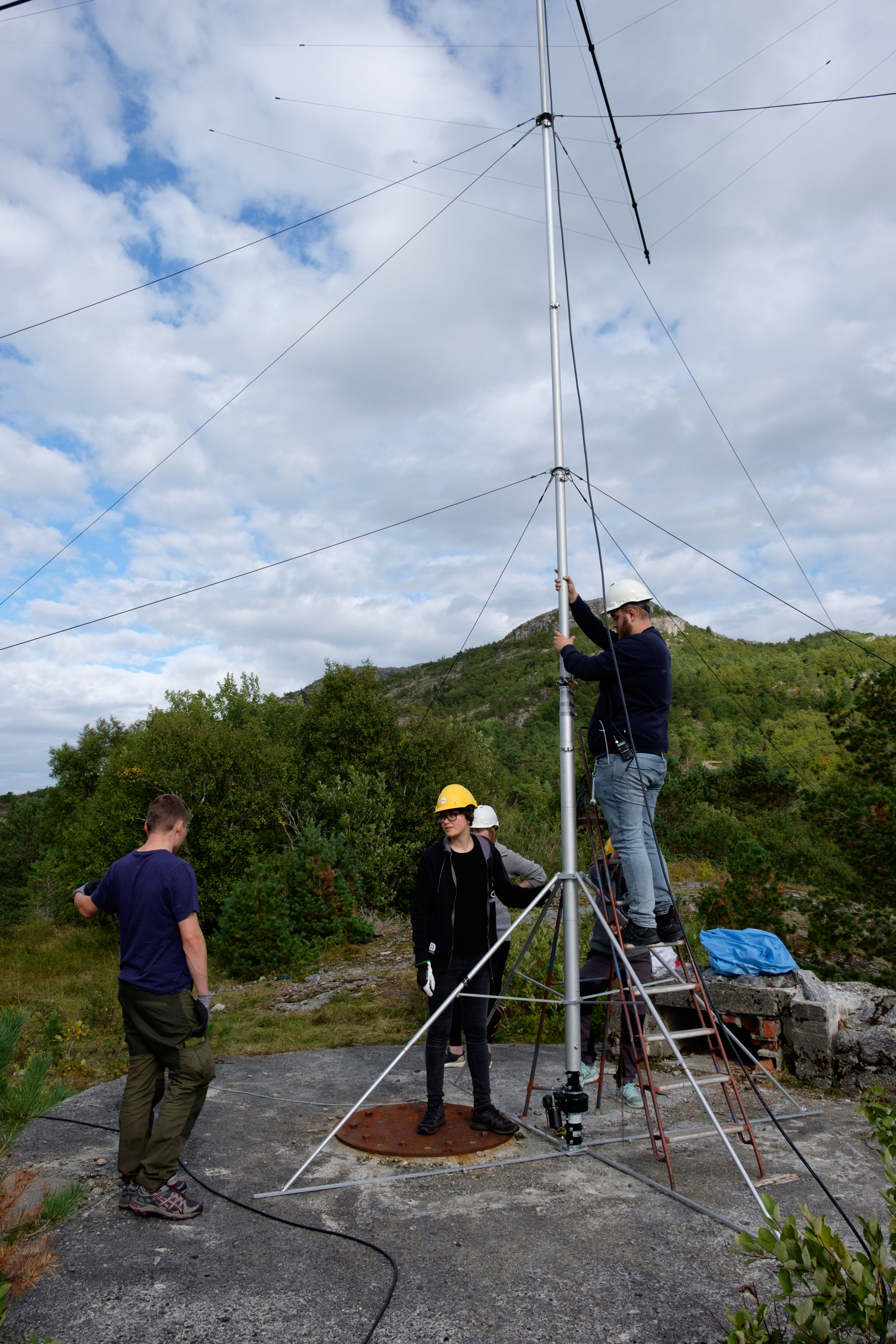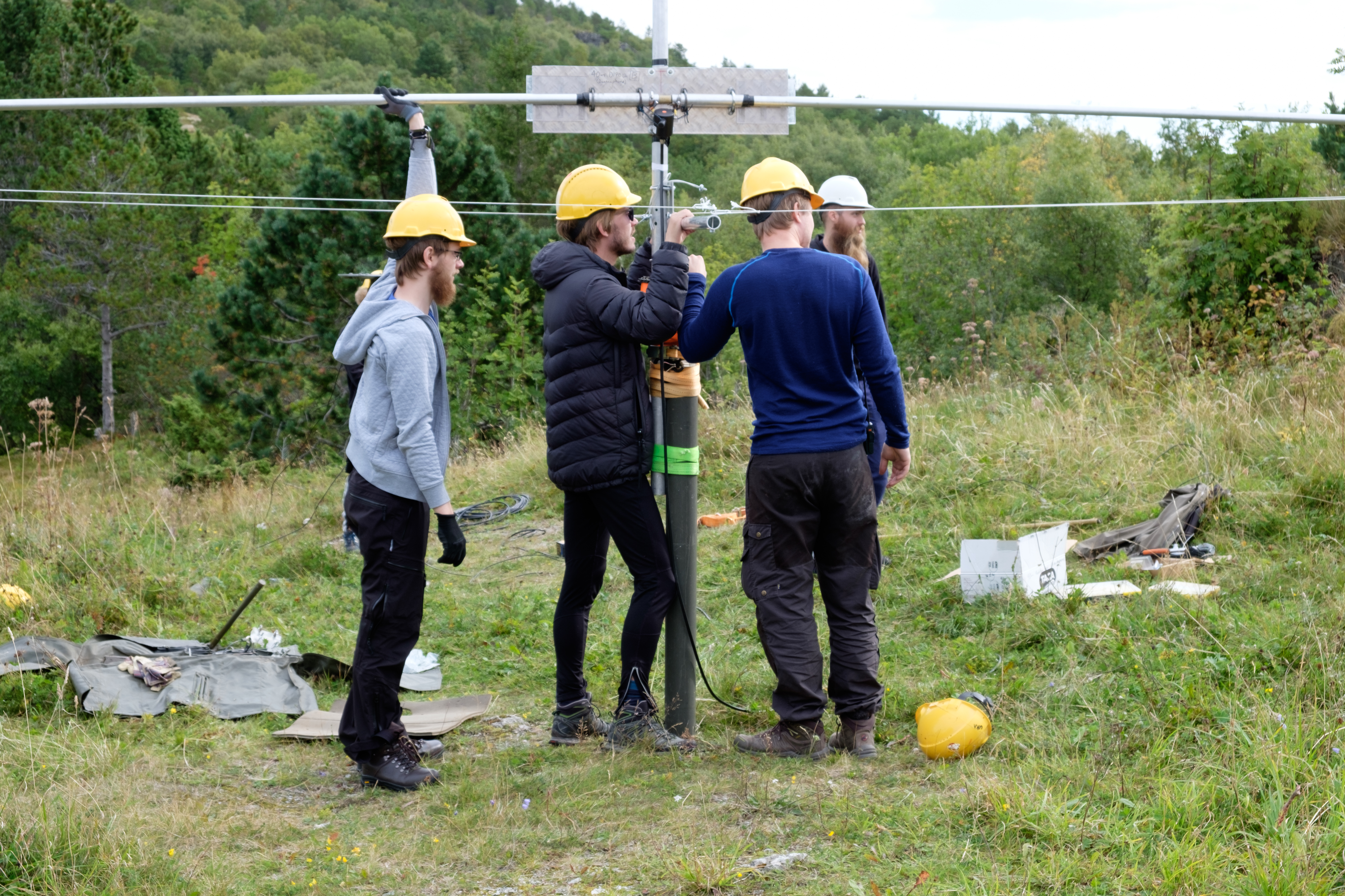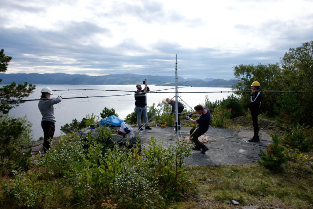 A 4O3A triplex filter was used to separate the common fed 20, 15 and 10 m bands on the spiderbeam (held by LB5DH to the upper left). This way, multiple rigs can be used to work simultaneous contacts on the same antenna. We actually almost forgot the filter. Luckily we had too little room in the cars, and Jens LB6RH had to wait for the next bus to Fosen. He discovered the oversight when he did a last check of our club locales before he ran – with the filters.