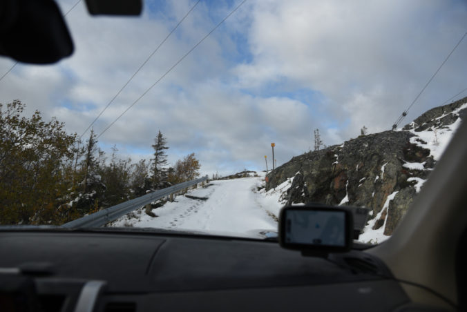 On the way up to Vassfjellet with a lot of snow in the road. Winter is here :-(. Photo: LA1BFA Magne.