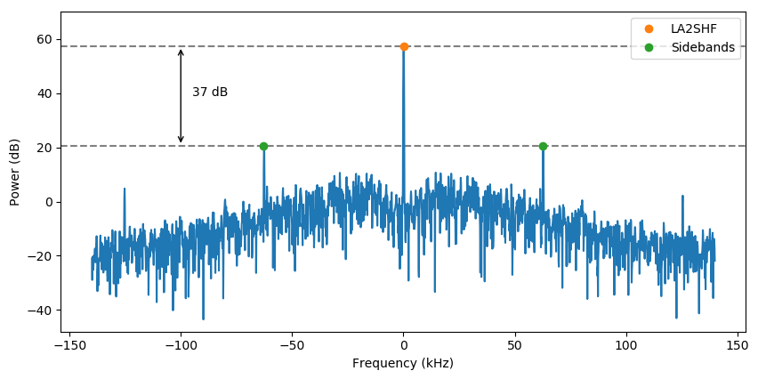 Sometimes, however, there were emissions at the sidebands that were suppressed down with only ~20 dB: