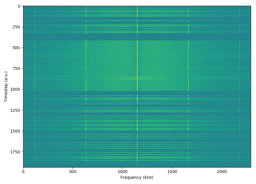 Plotting the frequency bins corresponding to LA2SHF and the first peak as a function of time partially explains the behavior, and why it wasn’t discovered until installation at Vassfjellet. The peaking behavior with ~20 dB increase in the first harmonics is actually an entirely different morse signal altogether! This could also partially be seen in the waterfall diagram above, as the pattern in the sideband peaks were uncannily regular.