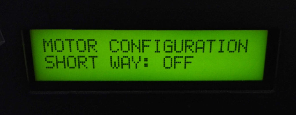 Pushing S again to enter the “Motor configuration” submenu, and scrolling with left arrow until the right setting: