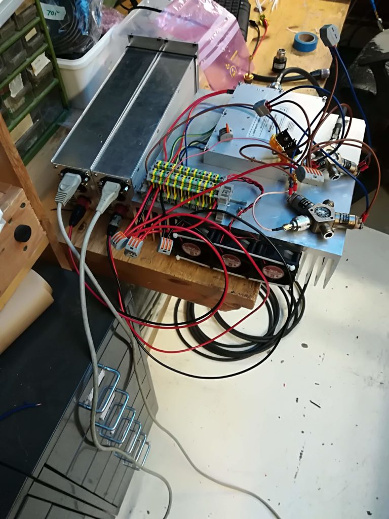 200 W 23 cm amplifier and power supplies on the lab bench.