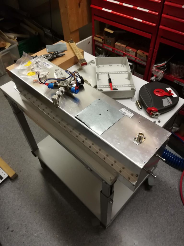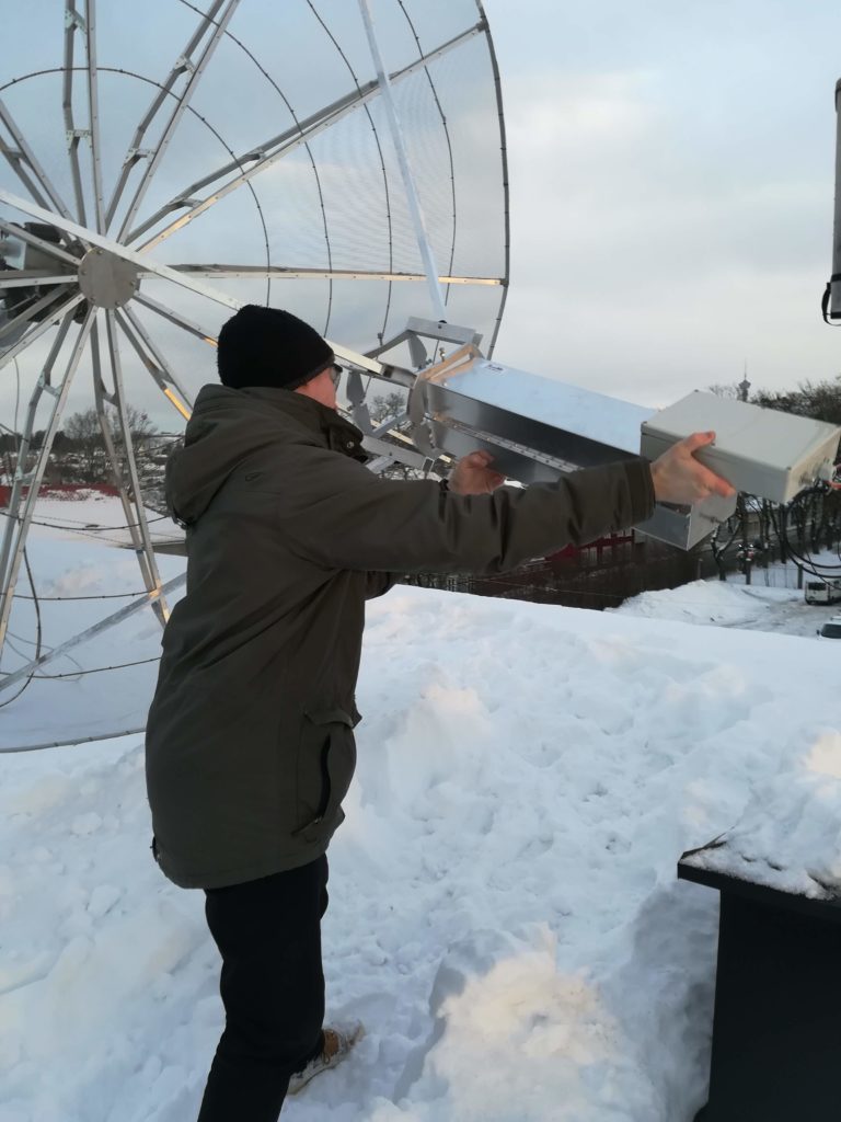 Later in the day, we also installed the coaxial cables, and connected the control wires for the LNA/relay box. And just like that, we suddenly have a fully working RX/TX chain for 23 cm. We did the regular tests, and were able to observe an increase in noise floor when the LNA turns on, and also that the PA gets warm when driven.