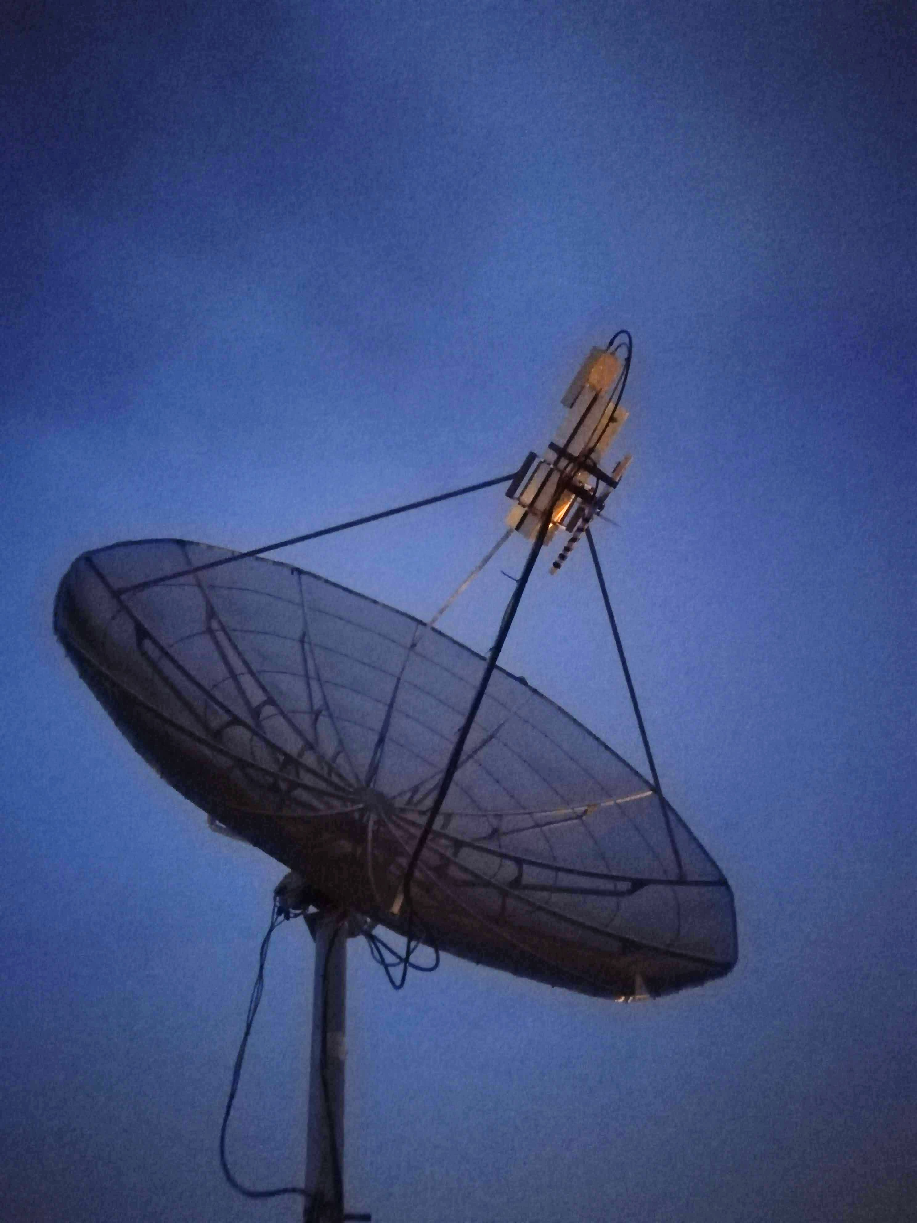 In our last post on this subject we had some issues with pointing our RX-dish towards the satellite. Partly this was because the beacons were only briefly available, since the satellite was at the time not yet commissioned, but mostly it was because we had the satellite bearing way off. The bearing became much easier to find after we had pointed our 3 m parabolic dish towards QO-100, and were able to use it as a reference for where to point.