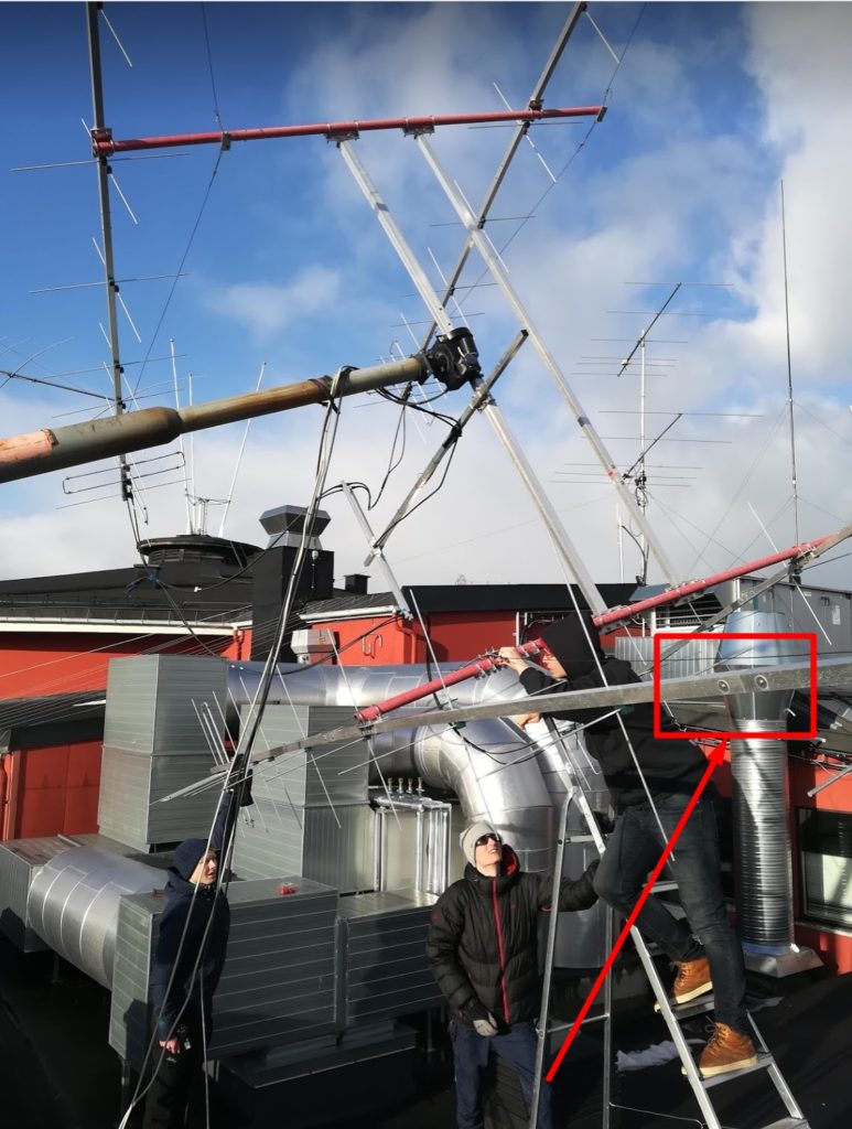 A couple of weeks ago we had a near-catastrophic failure with our 144 MHz array. One of the four antennas came loose from its joint one evening, and was hanging from its coaxial cables when we found it. Unfortunately it was too dark to take any pictures, but the result is clearly seen in the featured image above – an amputee array. Luckily the antenna survived, and only got some minor bends to show for it.