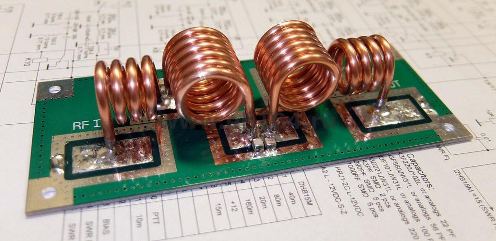 Other time-savers were the off-the-shelf filter and amplifier modules. EB104.ru have a lot of cool and affordable stuff. For this project we chose a low-pass-filter they sell (27$) for the 6 m band. Its 2 kW rating is definitely overkill, but hey – it was cheap.