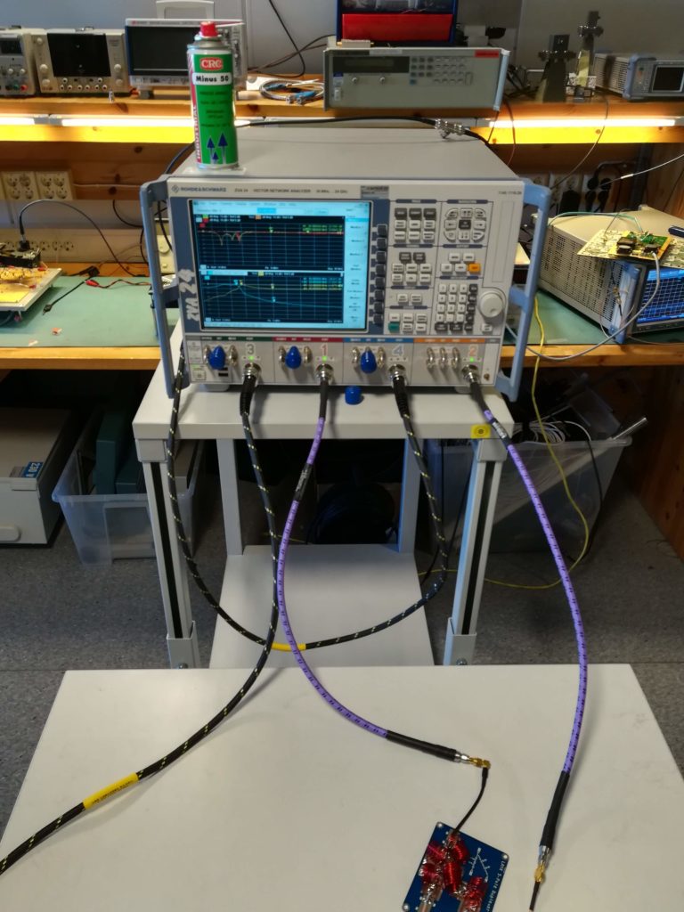 To accomplish this, we made a simple PCB to hold a 5-pole lowpass/highpass style diplex filter. The project is rather simple, so it can be argued that a vero-board or similar would be a more appropriate solution. However, the PCB implementation makes for much better grounding, which in turn helps with heat transfer – increasing the power that can be run through the board. It also looks pretty. 🙂