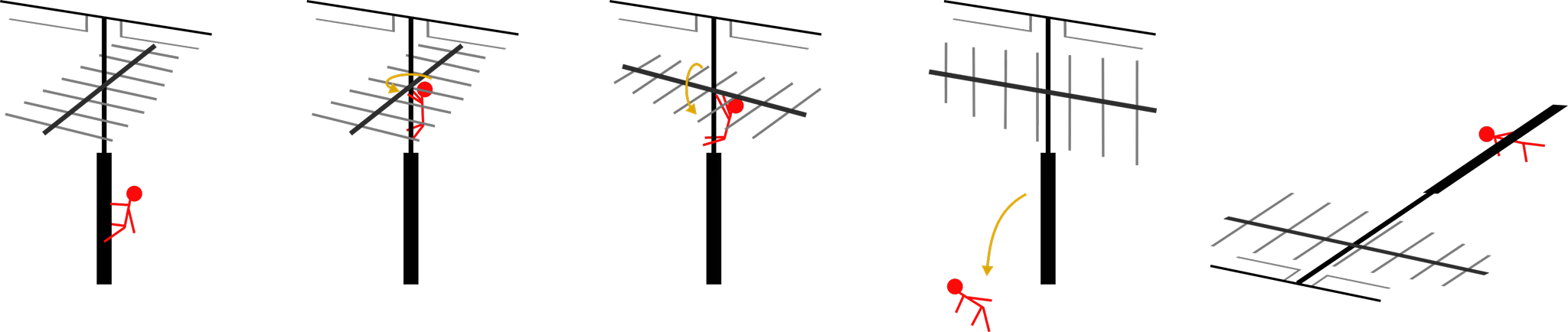 2. Climb the antenna, loosen some bolts, and rotate the Force12 5BA yagi 90 degrees in azimuth. Re-tighten the bolts.