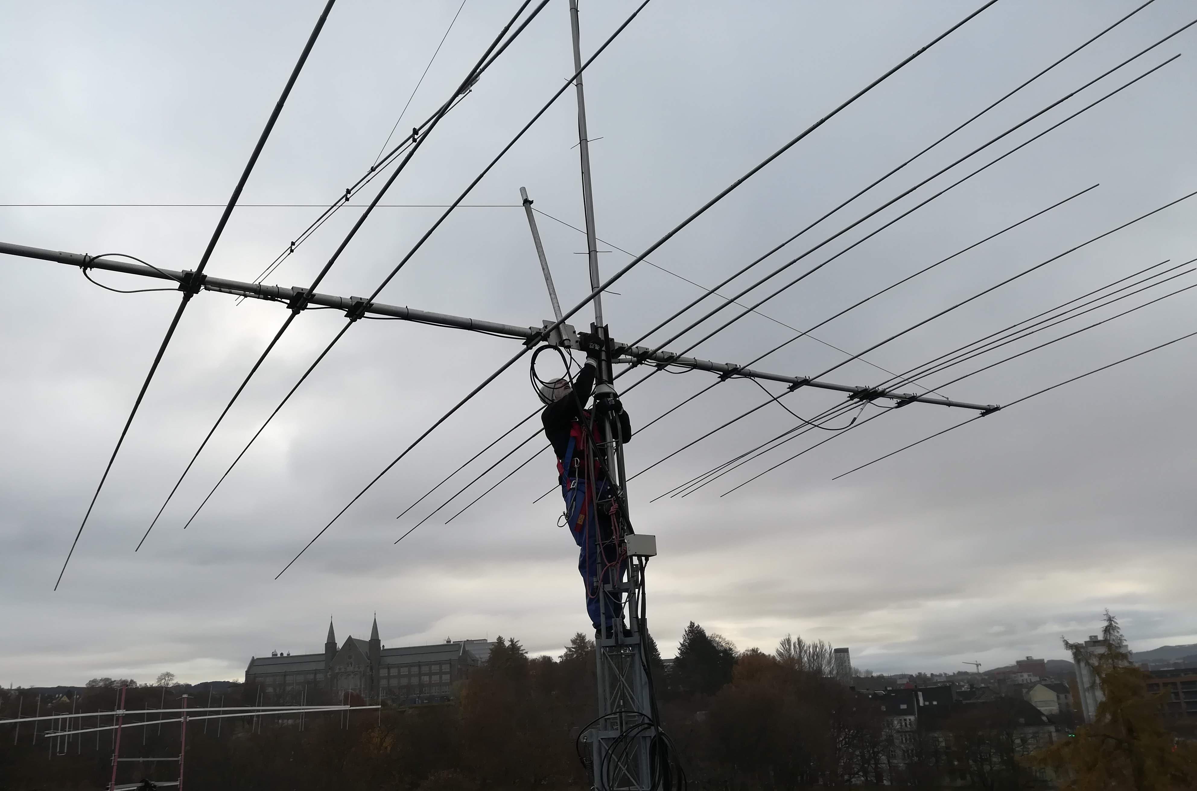 After hoisting the mast we did some quick measurements, and luckily everything was back to par. All antennas in the mast are now resonant close to 1:1 SWR somewhere in their respective bands. This means that we are once again able to make contacts. Thanks to everyone who helped make us QRV.