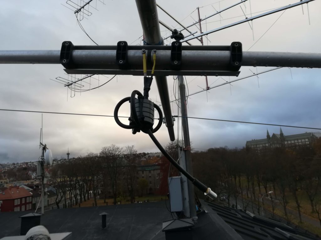 With some help from our good friends at Fotogjengen, we were able to inspect the antenna without climbing by using a high resolution image sensor and a telephoto lens. We found two probable faults using this method, and one of them did not require lowering the mast. We had our first target: replacing the damaged coax.