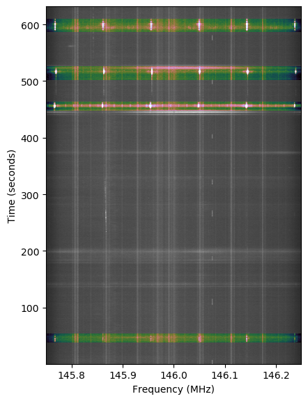 The comb noise spikes are clear even for the weaker signals. For fun, it is possible to create a metrobus detector using simple classification techniques: