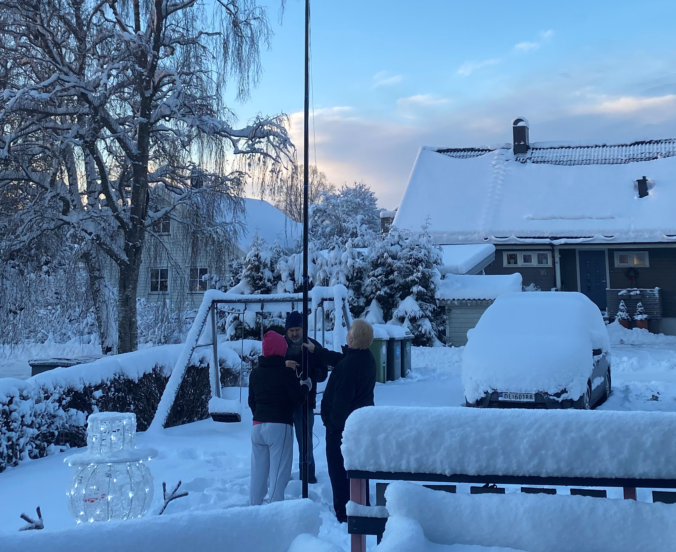 As it turns out, my childhood home might not be ideal for this hobby as the QRM prevented us from hearing much of anything. We got one QSO the first night, with DJ7ST in Germany, but after multiple attempts during the following days, the project was abandoned before the new year. A big thank you to LB9WI’s father, uncle, brother-in-law and younger sister for helping raise the antenna and for showing an interest in amateur radio!