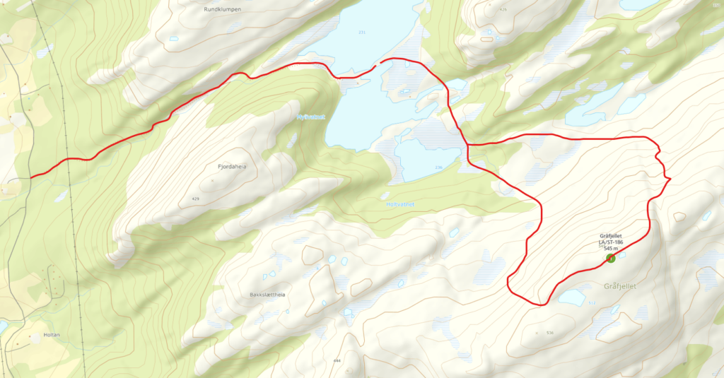 This had been a short but very nice trip, so nice that we spontaneously decided to try another the day after. After a brief discussion at midnight, LB5DH and Tobi decided to try LA/ST-186 Gråfjellet. Unlike Rabbolen, we did not expect any path for the final ascent up to the top, but we decided it would be a fine challenge.