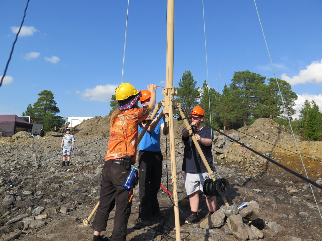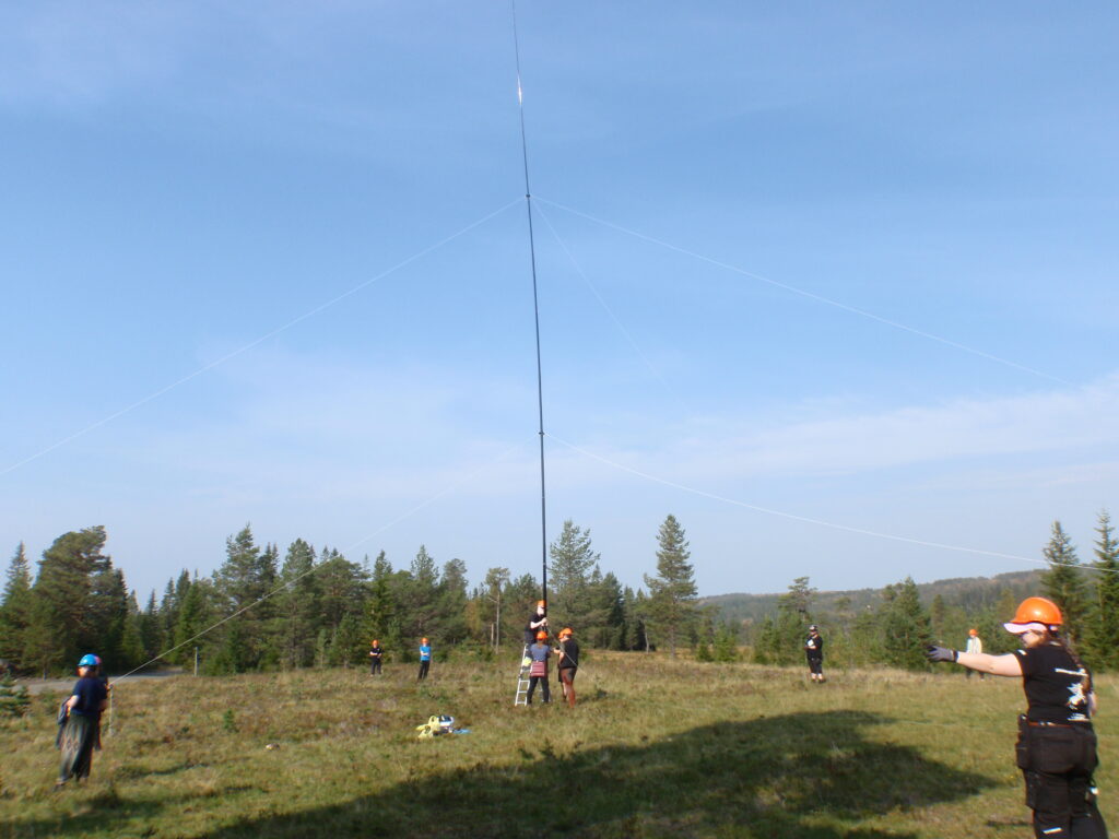 On Saturday morning we got up at 7.00 am and had breakfast. At 8.00 am we went to work, building the Spider Beam and the Banana Phone. This went by quite fast, and not long after the 80m antenna was also on its way up.