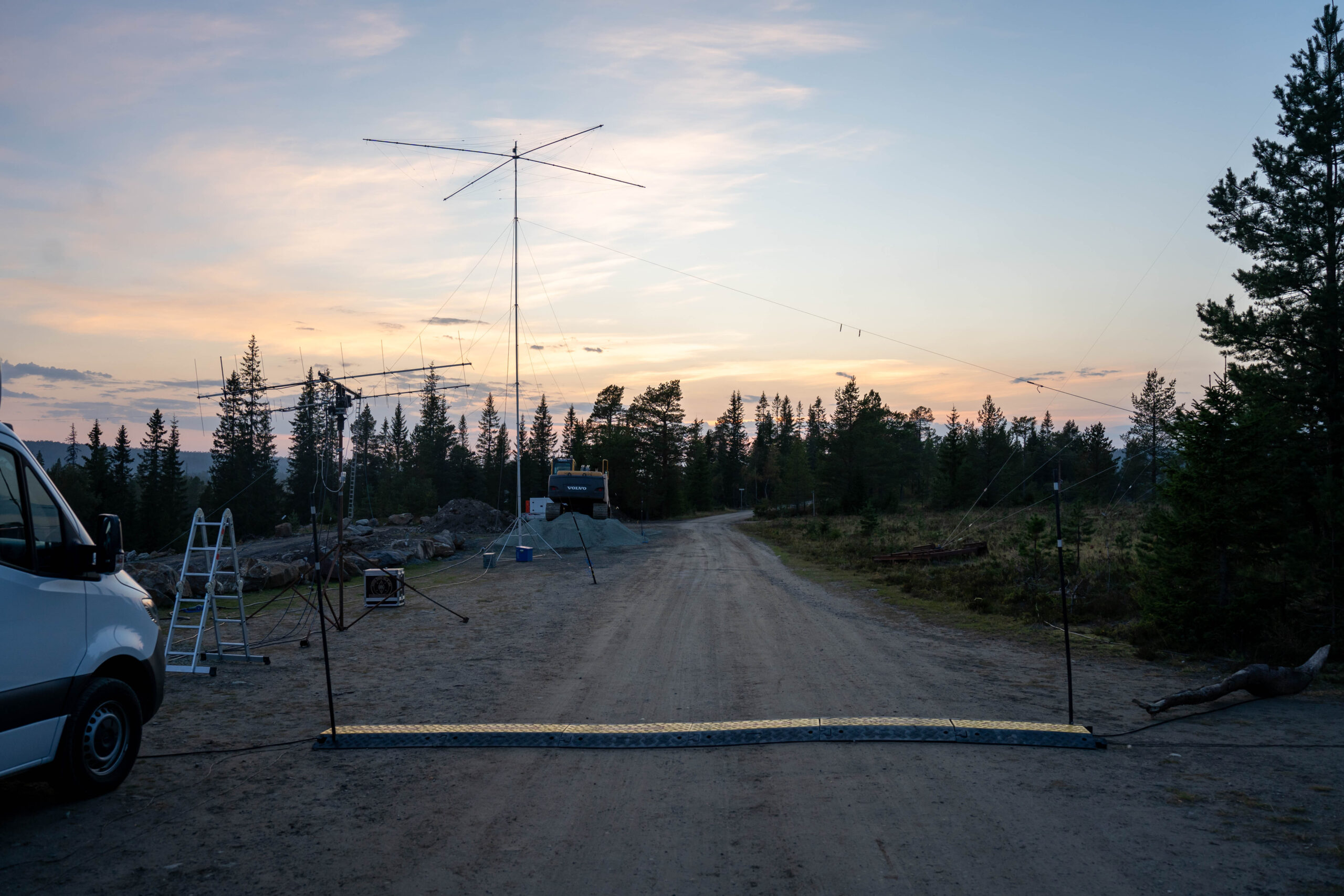 Due to Samsjøen and Håen, the two lakes on each side of the cabin, improving their hydroelectric power station, there was a bit of construction and landscaping going on next to the cabin. Our usual setup of the antennas could not be executed and we had to make a new plan. As we had measured how much cable was needed before we went, we had to make sure our new setup had enough coax cable!