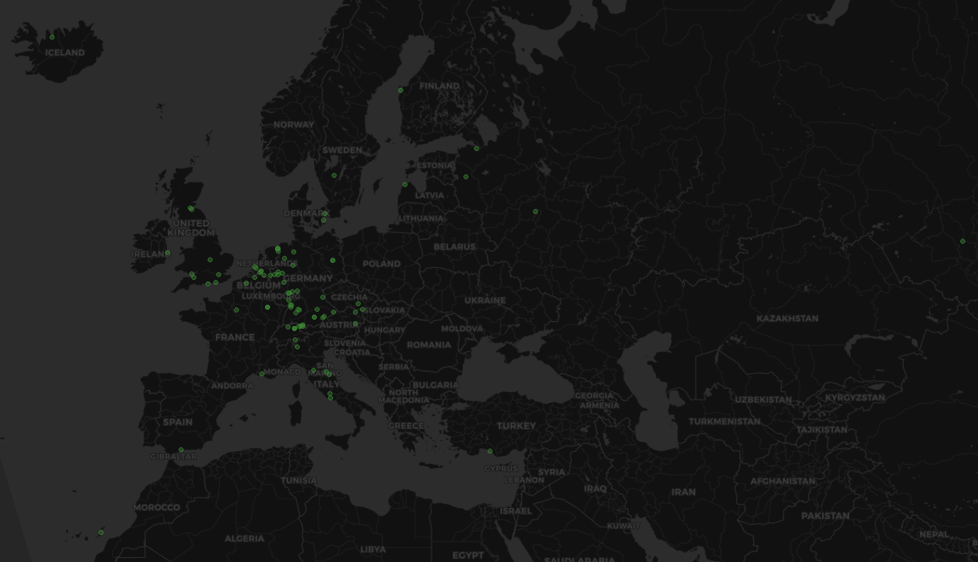 Our wspr spots with BigIR on 80m from 2022. Note the one in the upper left corner and the one in the bottom right. Screendump from wspr.live