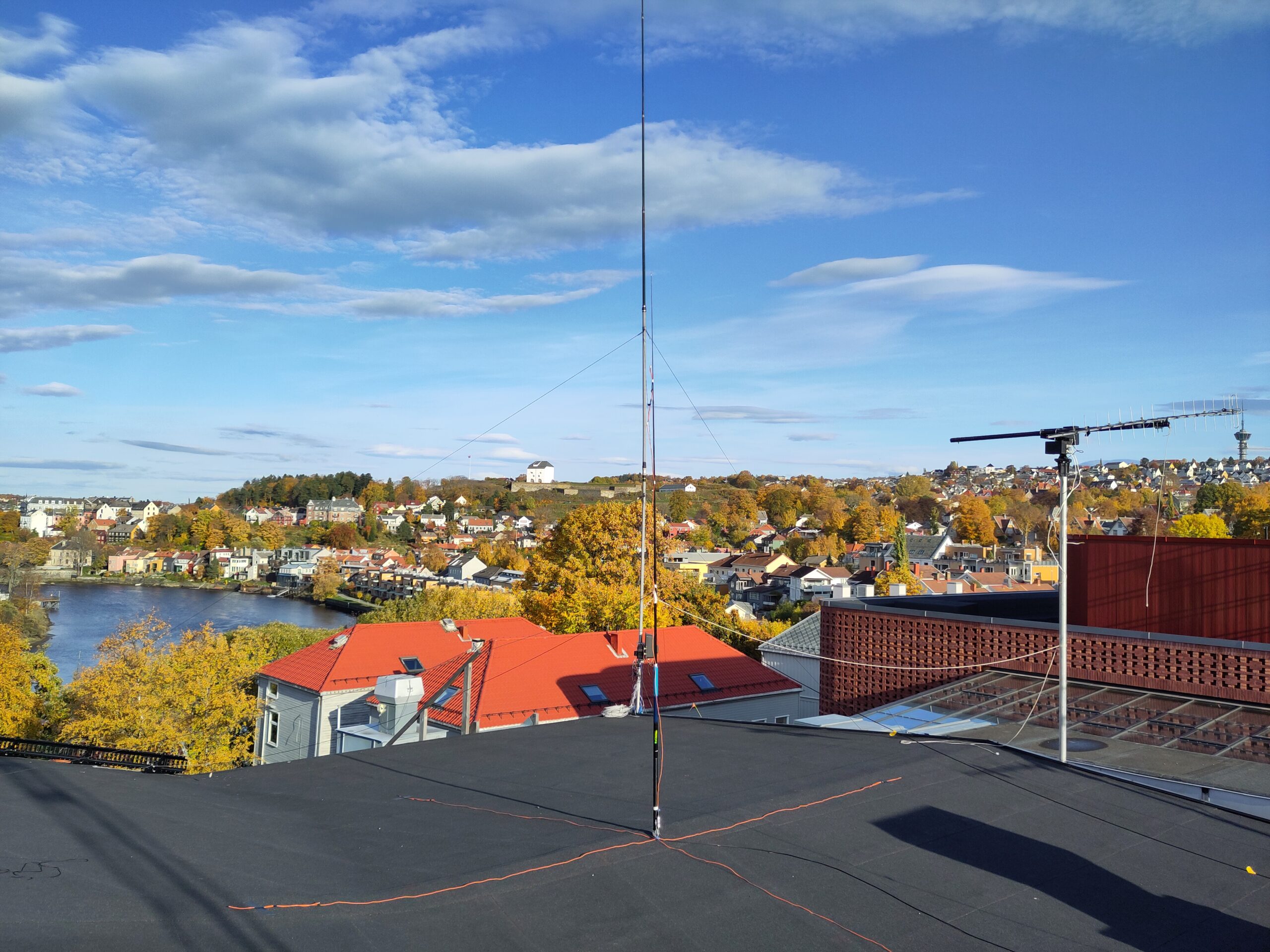 The quarter wave vertical on the roof, ready for SAC SSB 2024. Photo: LB5DH