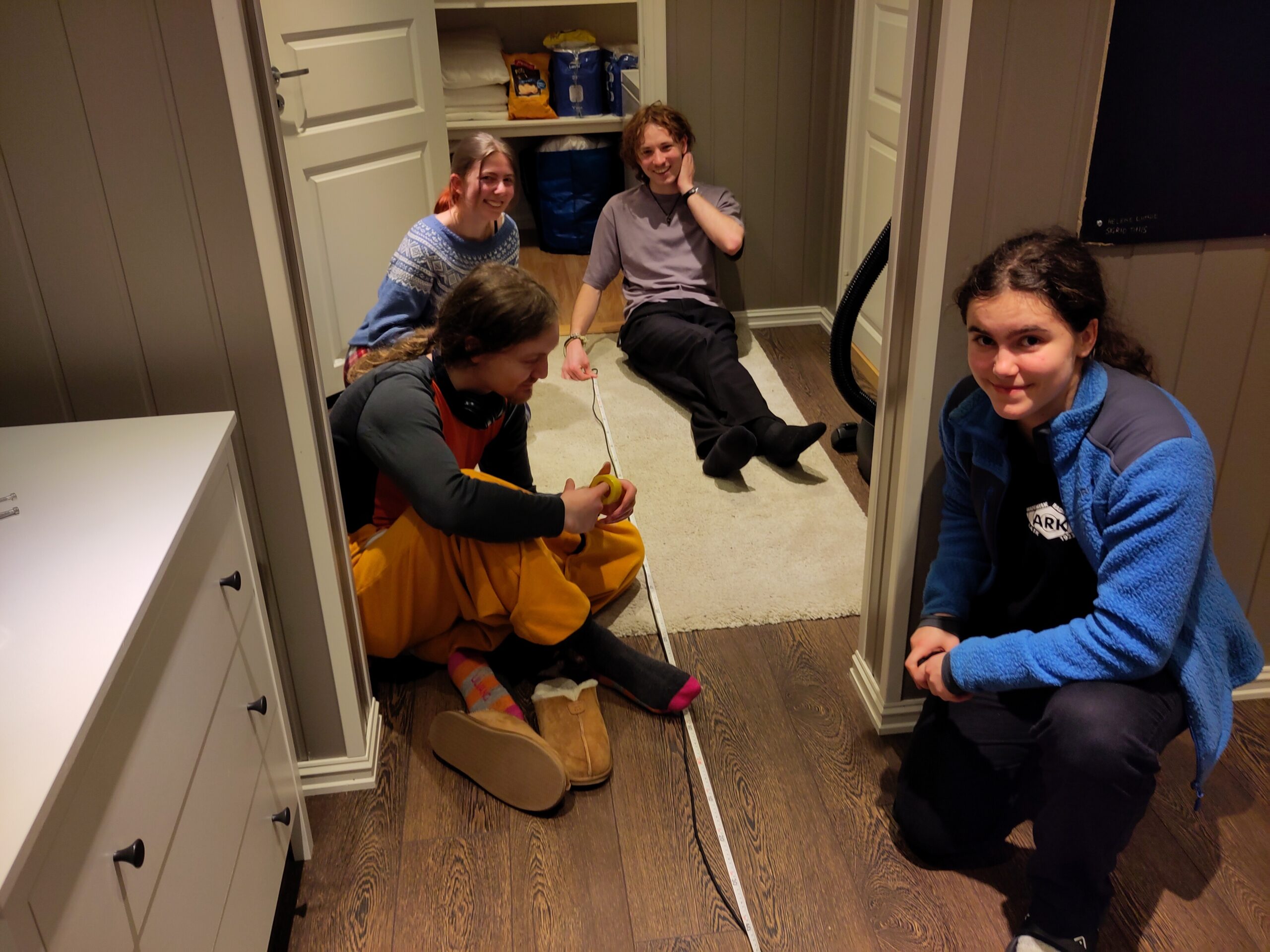 Preparing to remove the equipment. From left: LB6GH?, LB0CJ, Tiril and Emma. Photo: LB5DH