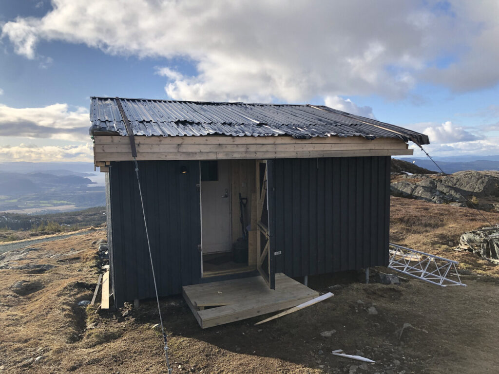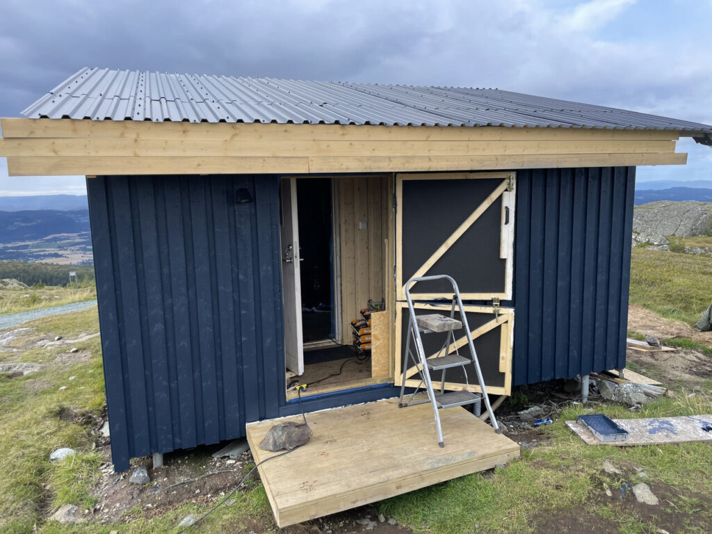 Our biggest point of interest was to see the status of the new roof we had installed last year. After the new broadcasting mast was installed at Vassfjellet in the mid 2000’s, falling ice was a bigger concern and a new sheet metal roofing was mounted in 2016 to protect the broken wood beneath. This sheet metal was of very dense corrugation and when it got dented became very hard to remount after it has served us for many years, and we had to try a different approach this time. The current solution consists of a very very thick layer of wood and less dense corrugated metal roofing sheets. It seemed to have worked well so far, as no puncture had occurred, although it had gotten a handful of dents.