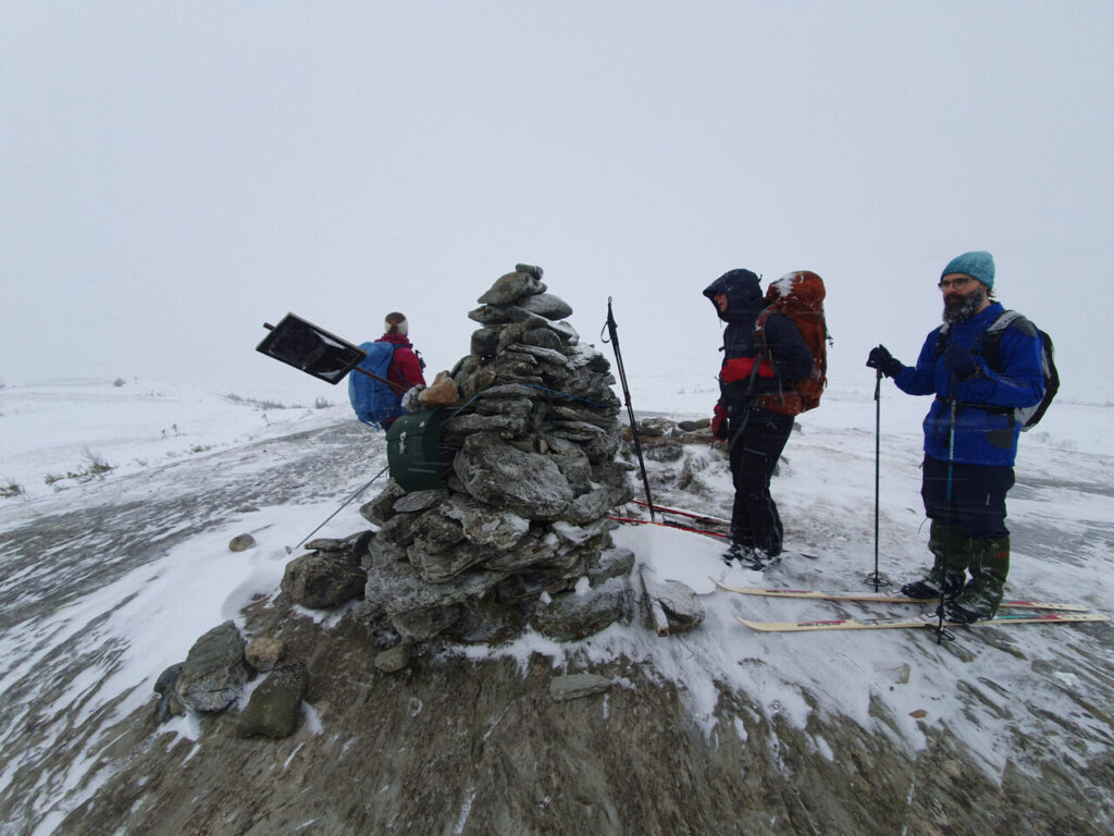 The route was easy to follow, with clear markings and a scooter track. The climb to the summit was roughly 5.2 km with about 300 m of elevation gain, which we covered in around two hours. The top was exposed to a lot of wind which resulted in barely any snow at the summit itself. We therefore walked the last few meters and looked for a more sheltered operating spot while staying within the SOTA requirement of being less than 25 m below the actual summit.
